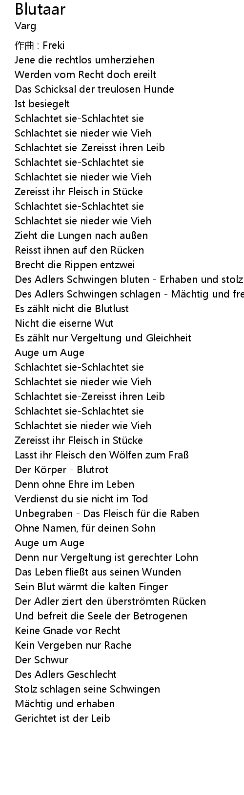 | Des Adlers Schwingen bluten Erhaben und stolz | |