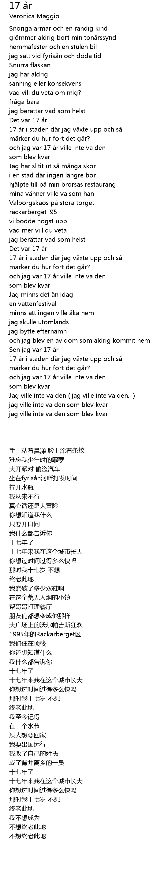| [02:33.700] | 17 r i staden d r jag v xte upp och s |