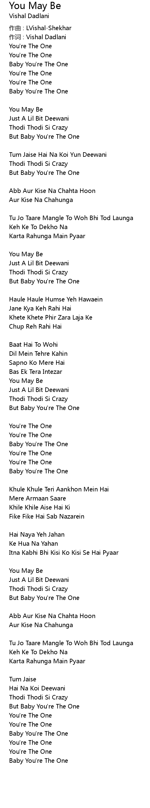| 作词 : Vishal Dadlani | |