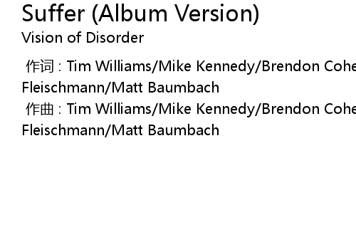 | [00:00.000] | 作曲 : Tim Williams/Mike Kennedy/Brendon Cohen/Mike Fleischmann/Matt Baumbach |
