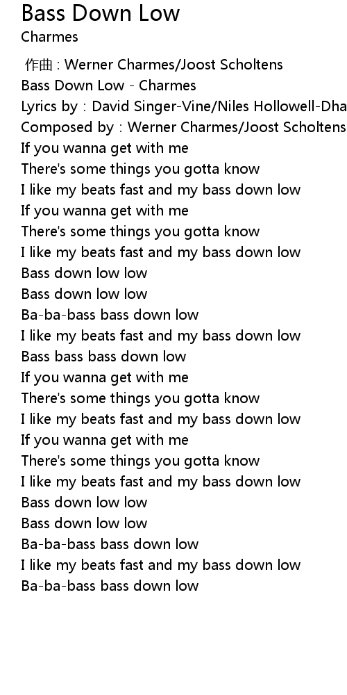 | [00:00.100] | Bass Down Low Charmes |