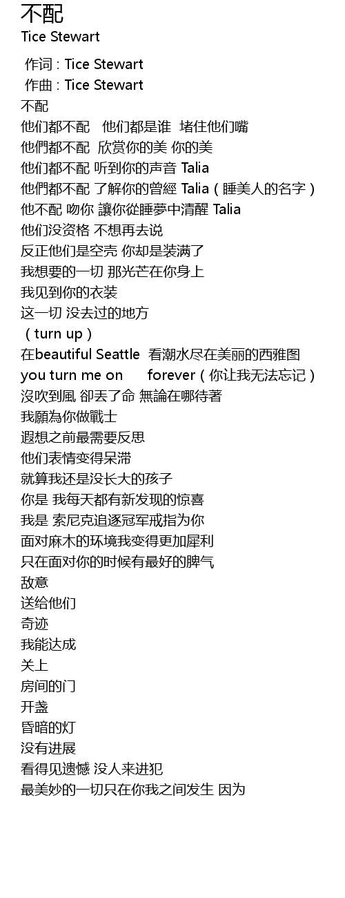 | [00:50.865] | 他不配 吻你 讓你從睡夢中清醒 Talia |