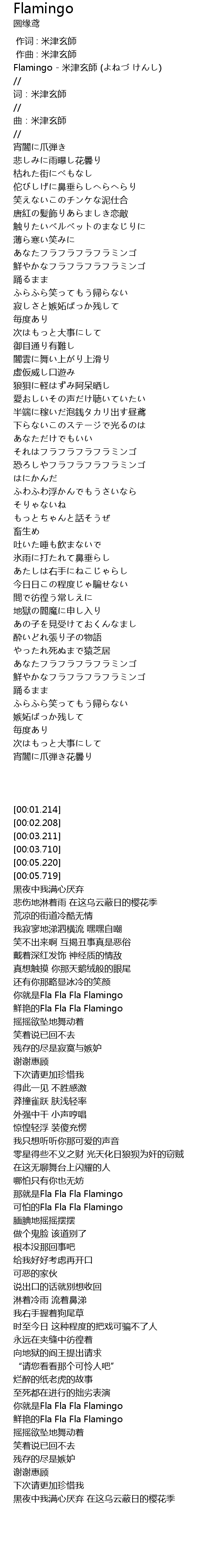 | [00:01.214] | Flamingo - 米津玄師 (よねづ けんし) |