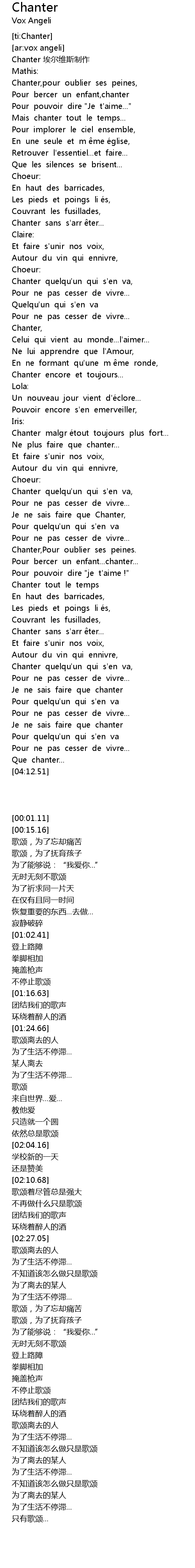 | [02:59.69] | Chanter tout le temps |
