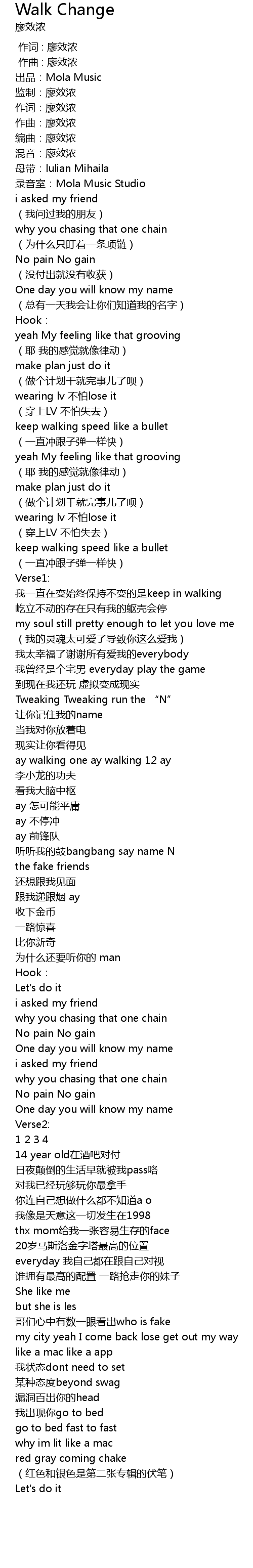 | 歌曲 | Walk Change |