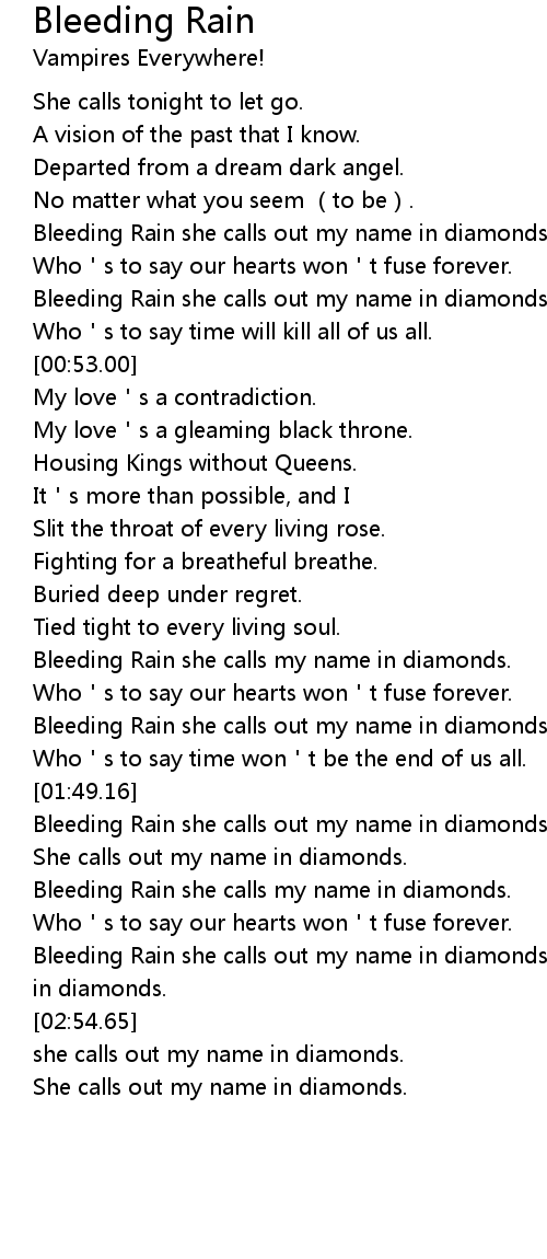 | [02:40.83] | Bleeding Rain she calls out my name in diamonds. she calls out my name in diamonds. |
