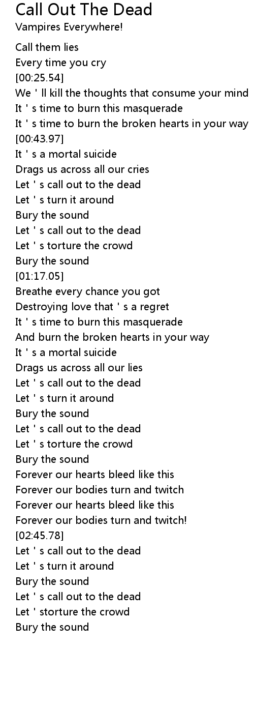 | [02:59.91] | Let s call out to the dead |