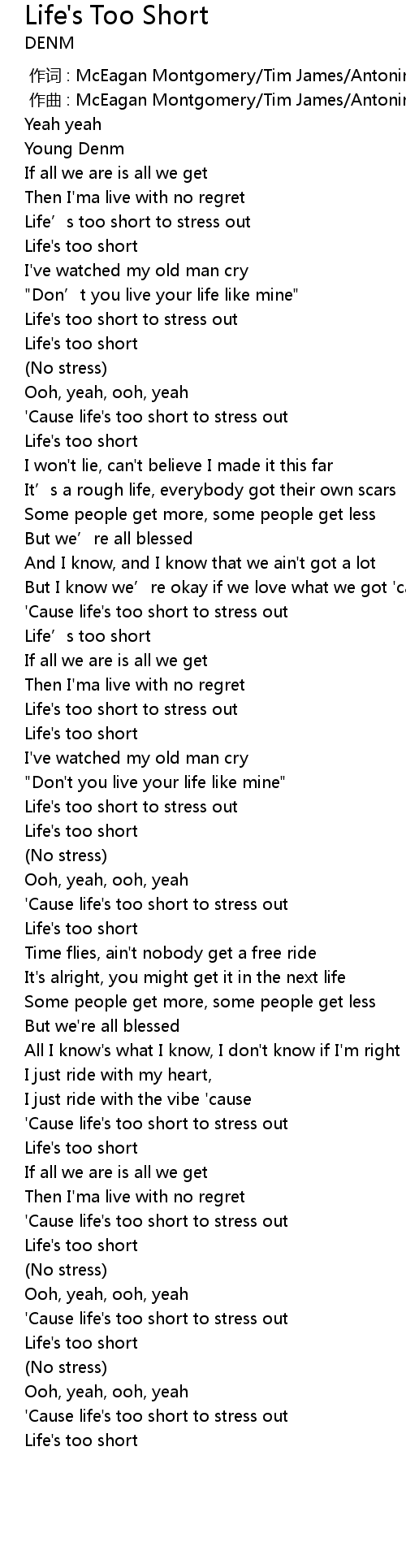 | [00:18.38] | Life’s too short to stress out |