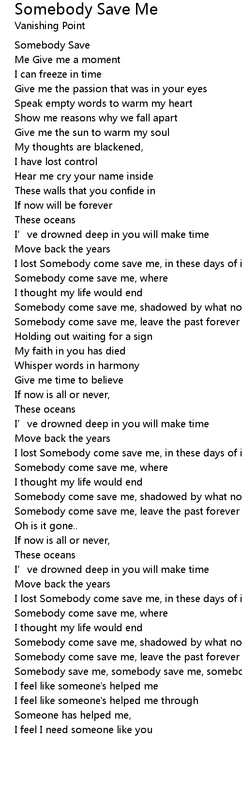 | Somebody come save me, leave the past forever is it gone is it gone.. | |