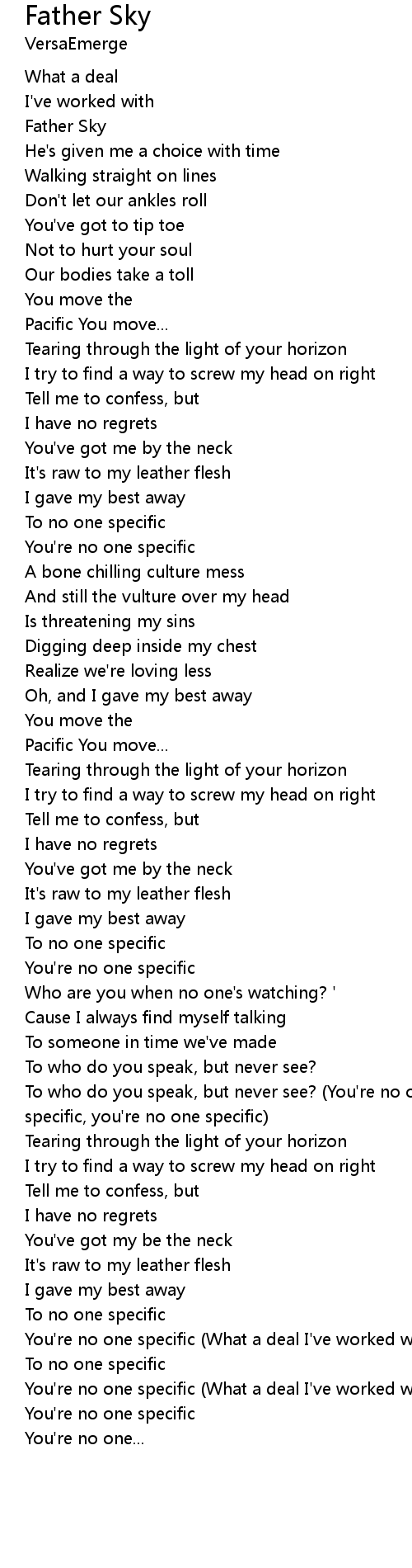You're no one specific (What a deal I've worked with Father Sky) |
