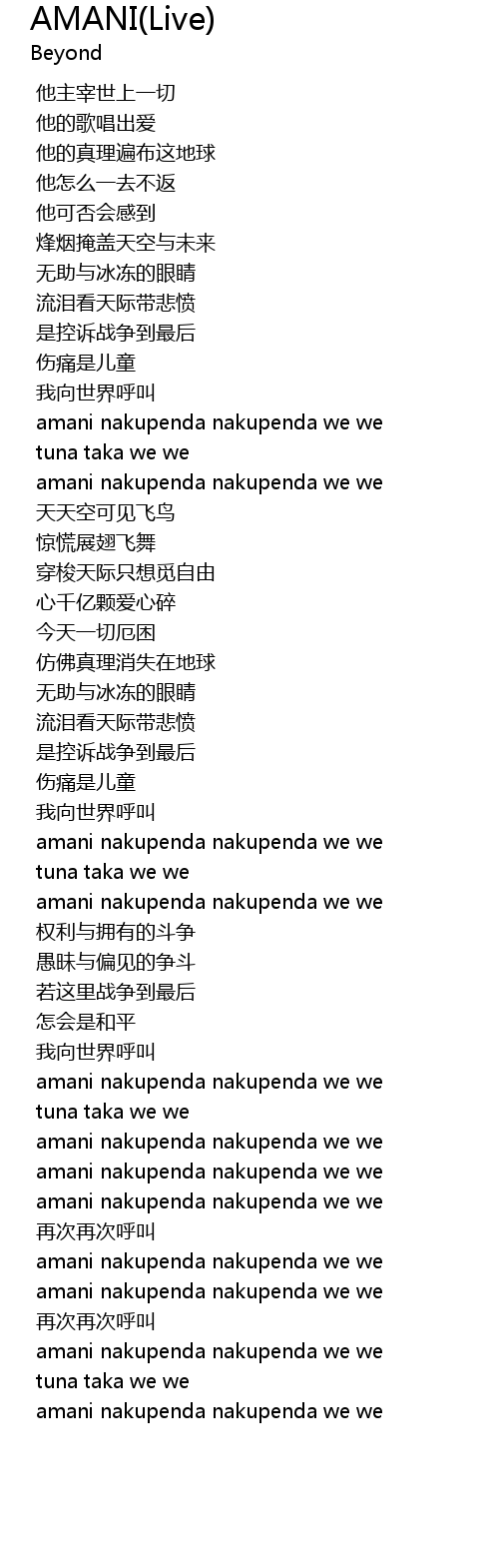 | [01:11.479] | amani nakupenda nakupenda we we |