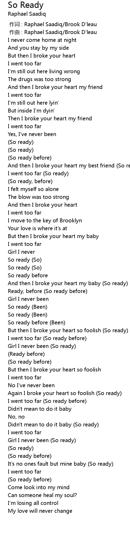 | [01:22.25] | And then I broke your heart my best friend So ready |