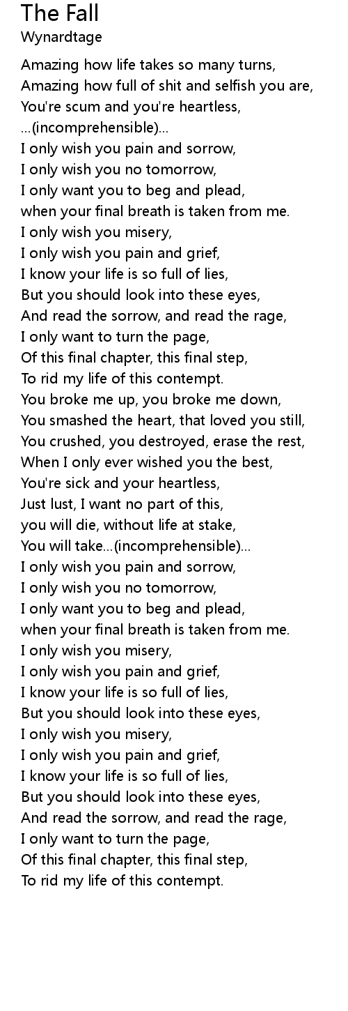 I only wish you pain and grief, |