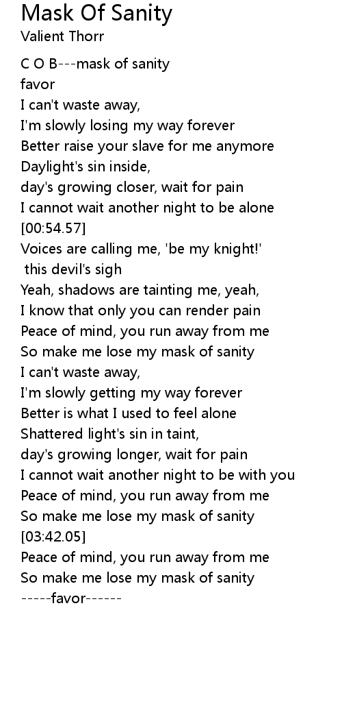 So make me lose my mask of sanity |