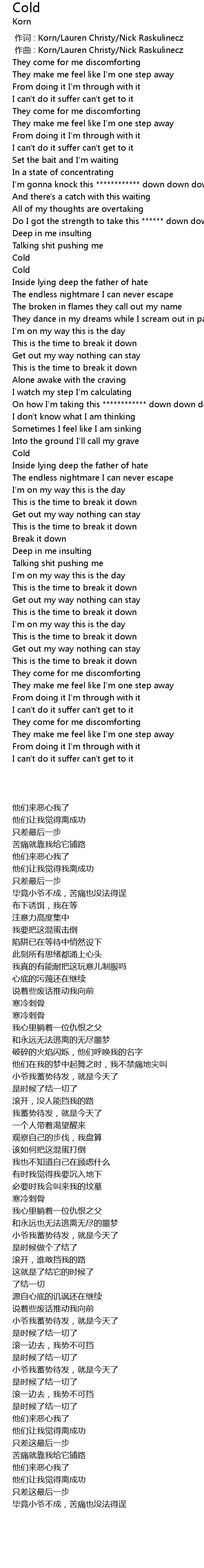 | [00:00.00] | zuo ci : Korn Lauren Christy Nick Raskulinecz |