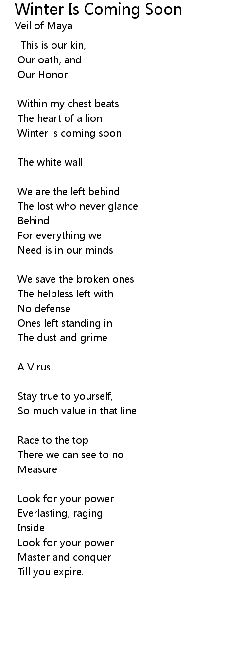 | 歌曲 | Winter Is Coming Soon |