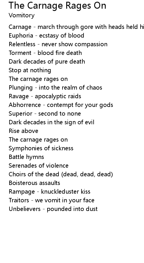 Carnage - march through gore with heads held high |
