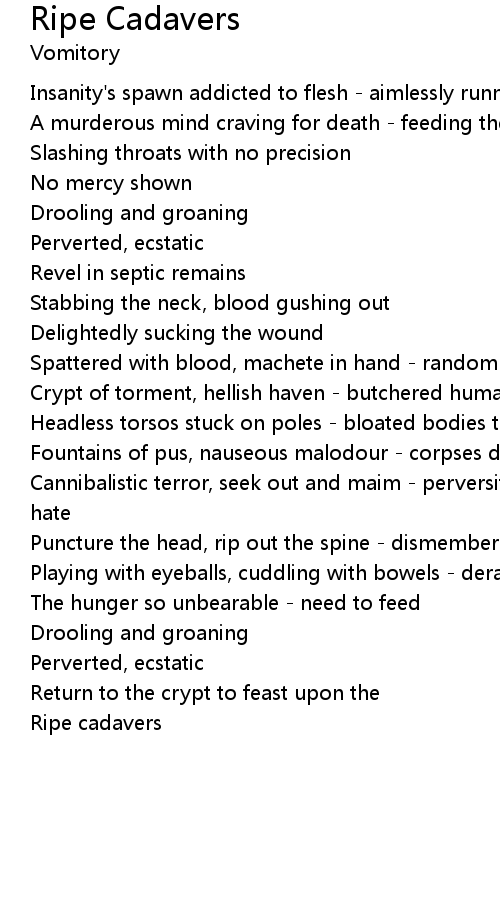 Puncture the head, rip out the spine - dismember the lifeless flesh |