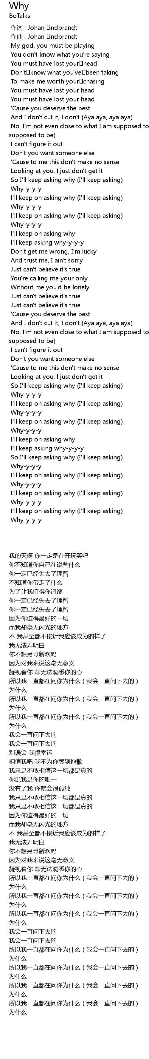 | [02:55.874] | 所以我一直都在问你为什么(我会一直问下去的) |
