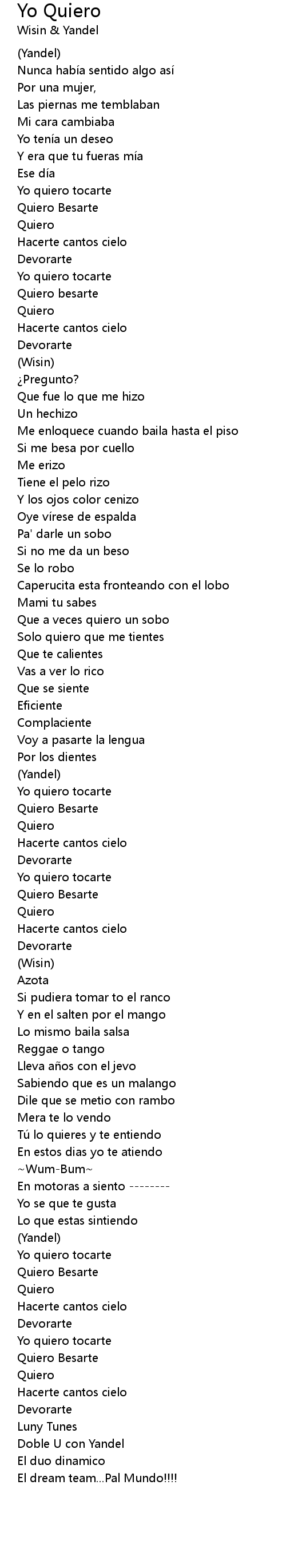 | 歌曲 | Yo Quiero |