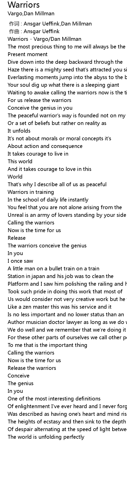 | [00:00.100] | Warriors - Vargo/Dan Millman |