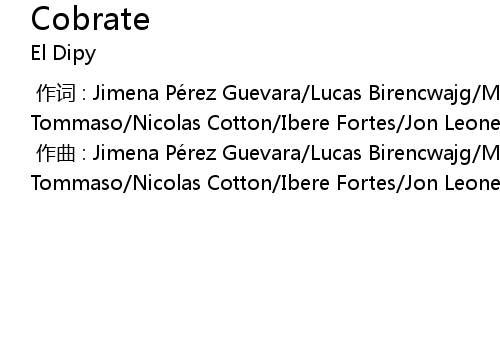 | [00:00.00-1] | 作词 : Jimena Pérez Guevara/Lucas Birencwajg/Mauro de Tommaso/Nicolas Cotton/Ibere Fortes/Jon Leone/Mickey Then/Carolina Colón |