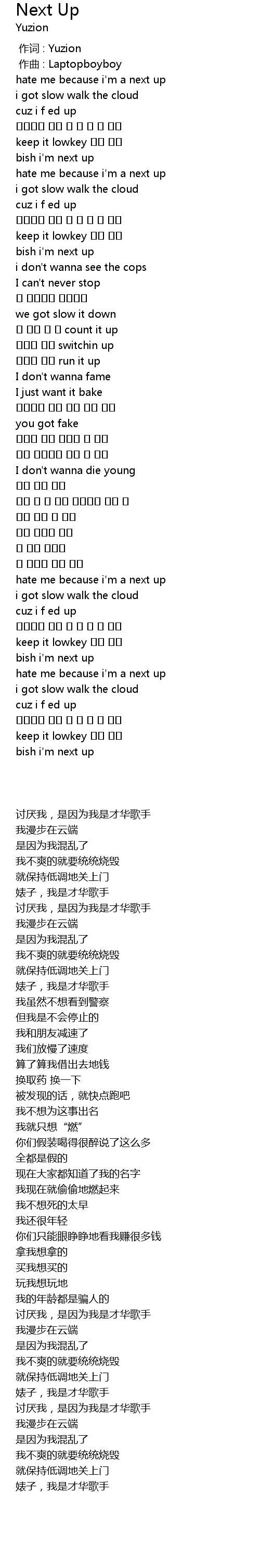 | [01:29.447] | hate me because i'm a next up |