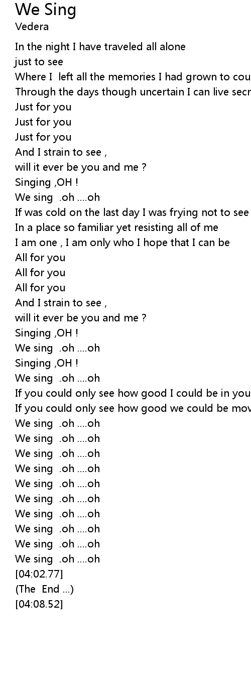 | [02:23.86] | If you could only see how good we could be moving on .ha..... |