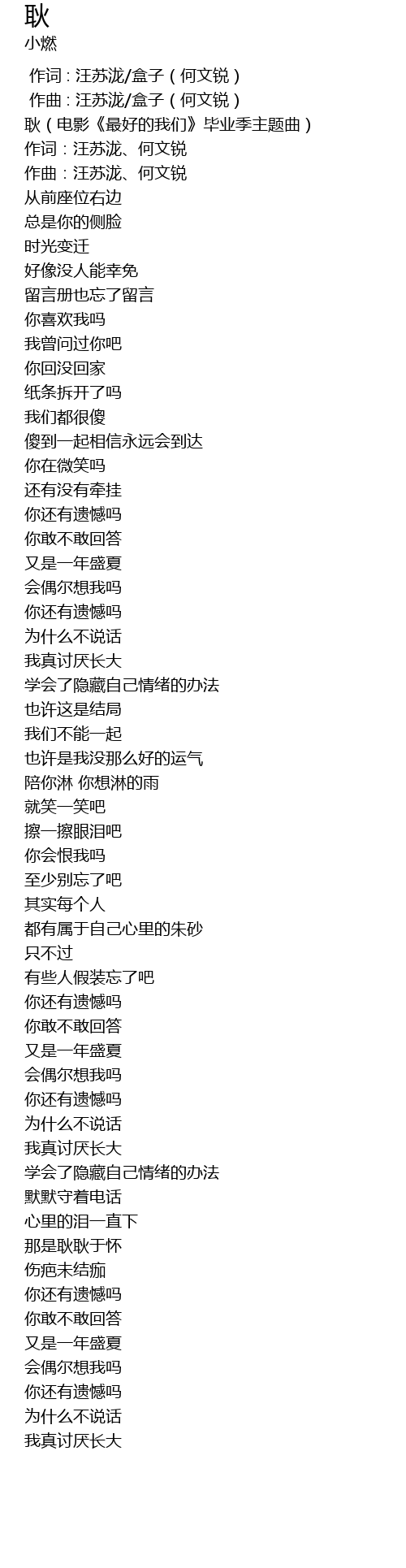 | [00:05.459] | 耿(电影《最好的我们》毕业季主题曲) |
