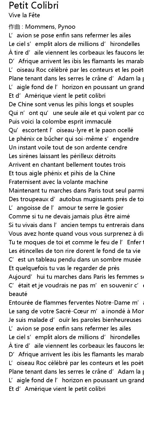 | Et d' Ame rique vient le petit colibri |