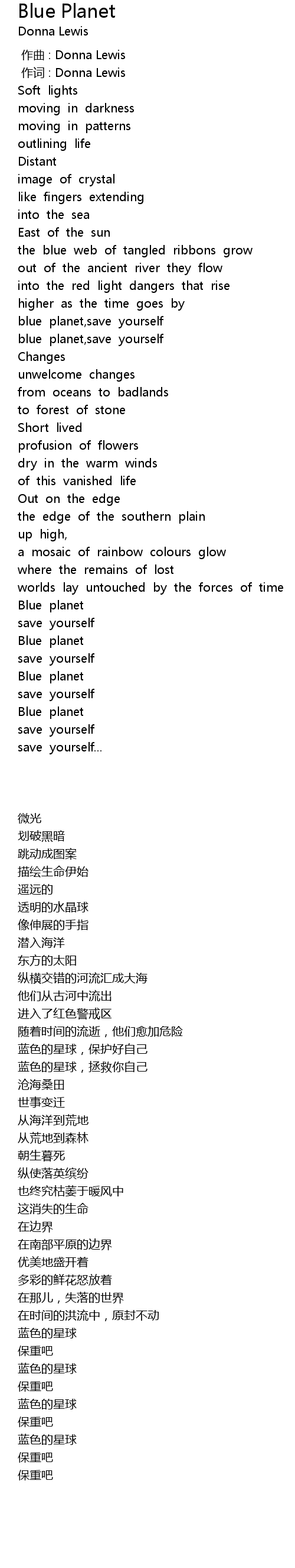 | [01:46.145] | blue planet,save yourself |