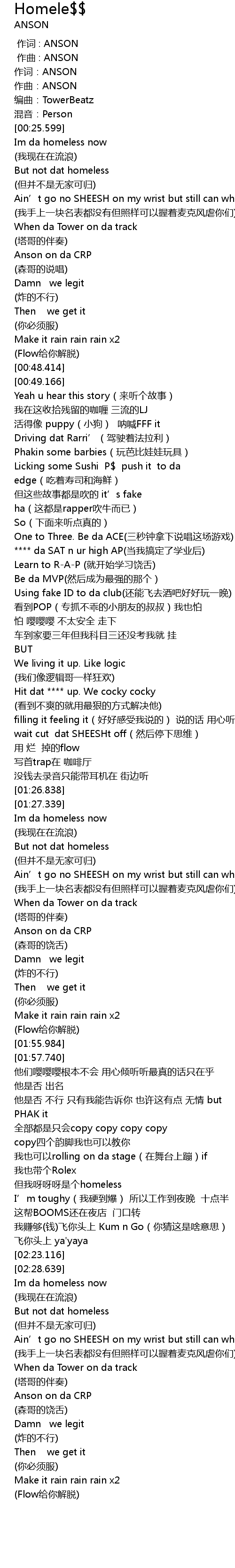 | [00:22.088] | 编曲:TowerBeatz |