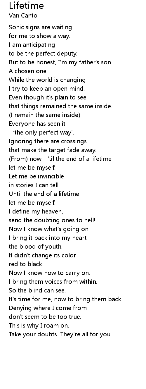 | (From) now ‘til the end of a lifetime | |