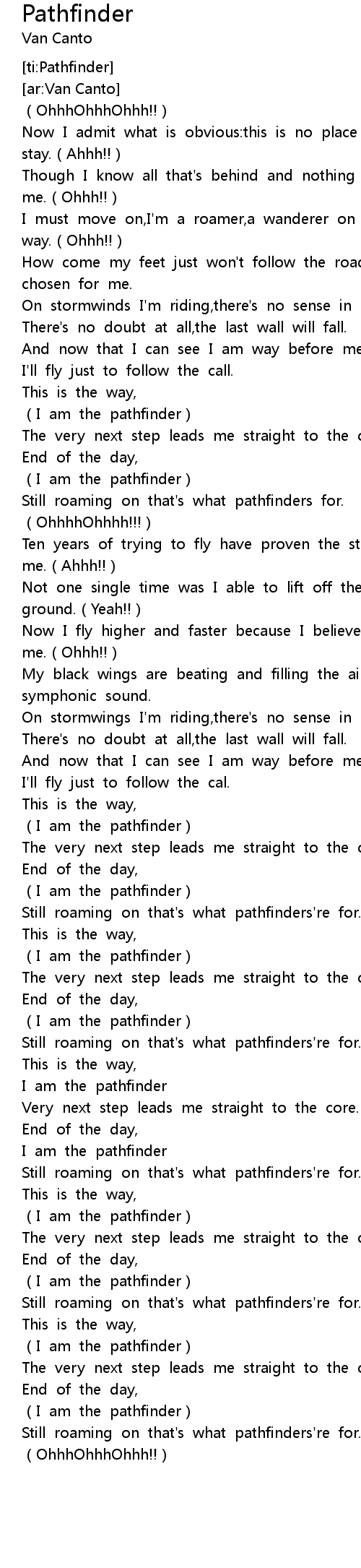 | [01:12.987] | (I am the pathfinder) |