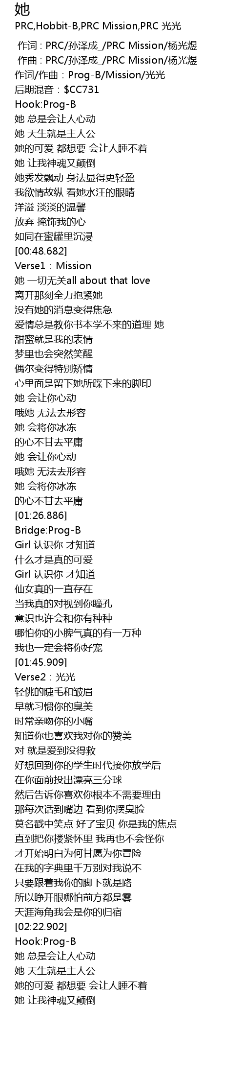 | [00:03.426] | 作词/作曲:Prog-B/Mission/光光 |