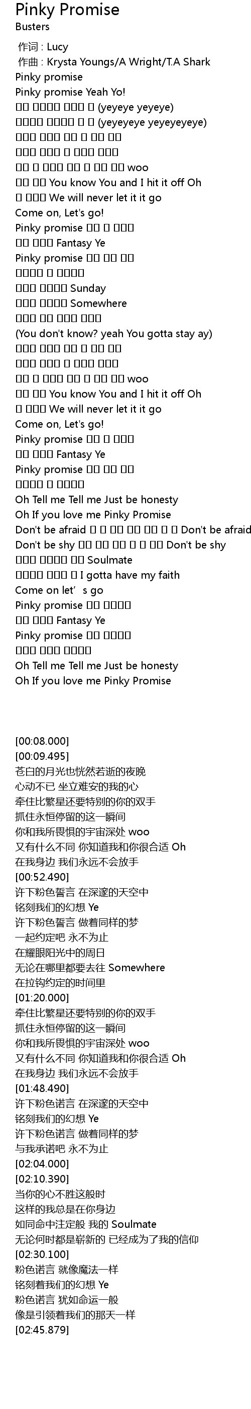 | [02:39.000] | Pinky promise 마치 운명처럼 |
