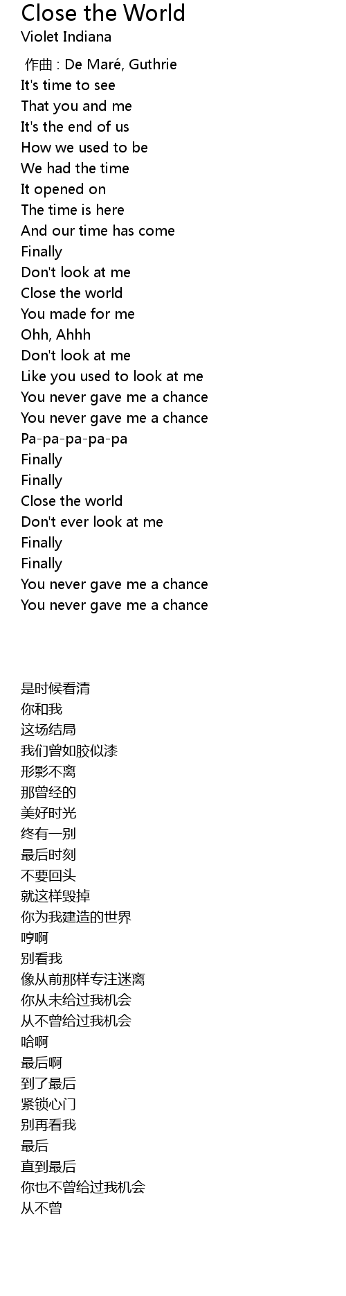 | [02:13.81] | Close the world |