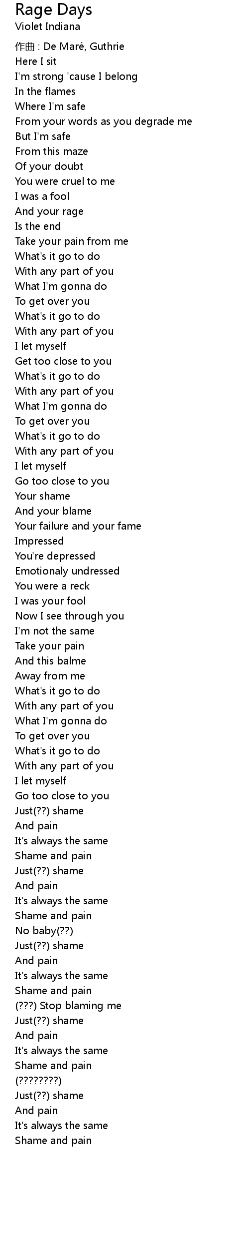 | 歌曲 | Rage Days |