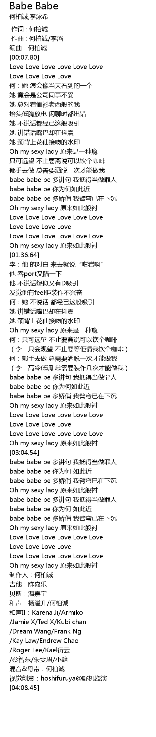 | [02:32.14] | babe babe be 多讲句 我抵得当做罪人 |