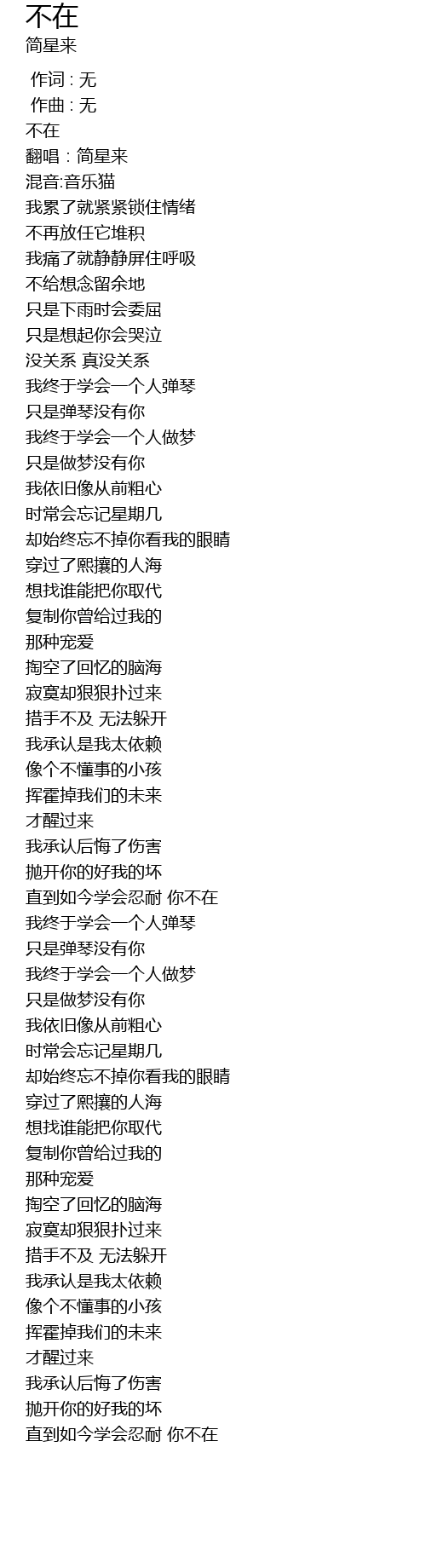 | [00:47.420] | zhǐ shì tán qín méi yǒu nǐ |
