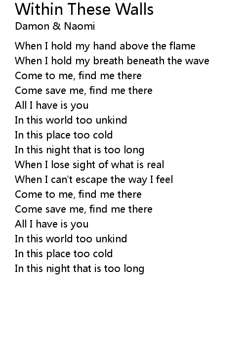 | 歌曲 | Within These Walls |