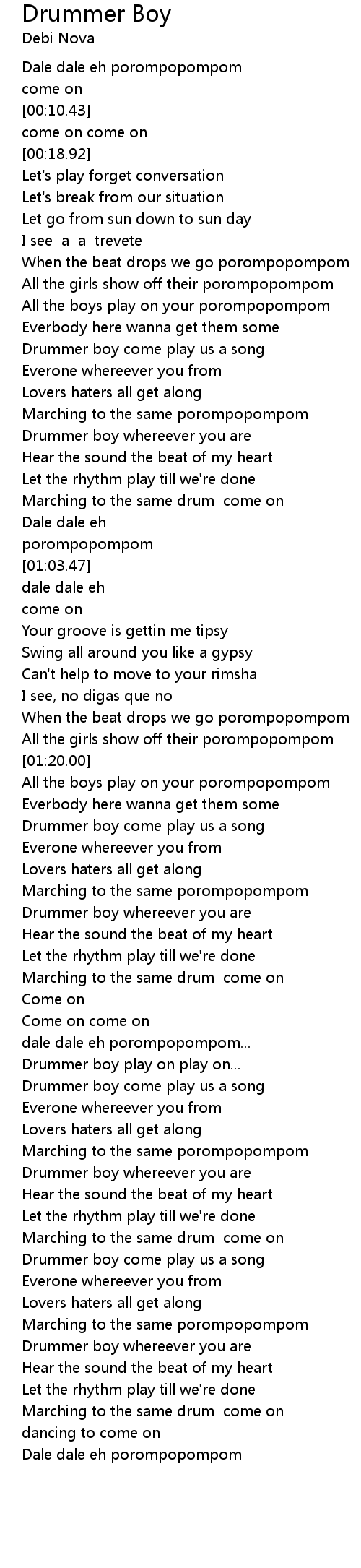 All the boys play on your porompopompom |