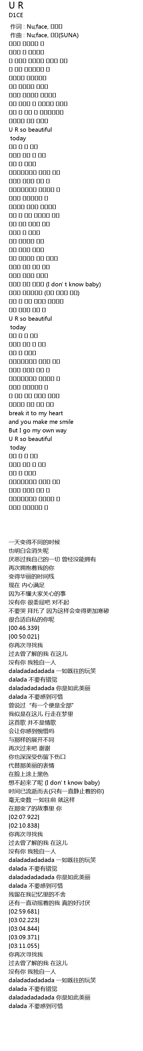 | [00:46.339] | U R so beautiful |