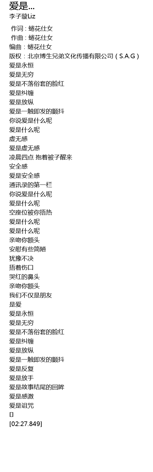 | [00:29.640] | 爱是虚无感 |