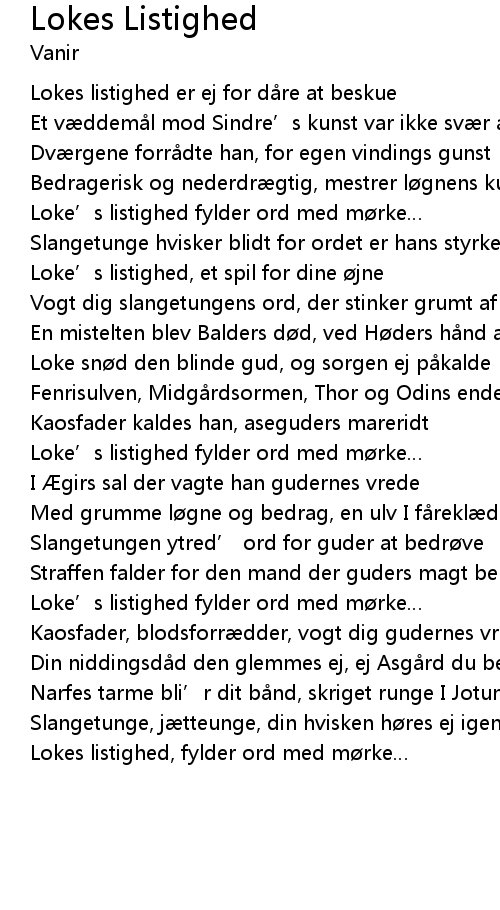 | Lokes listighed, fylder ord med mørke… |