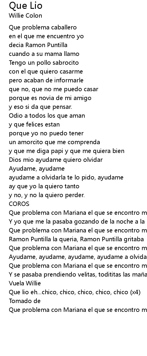 | Que lio eh...chico, chico, chico, chico, chico (x4) | |