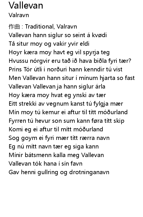 | Men Vallevan hann situr í mínum hjarta so fast | |