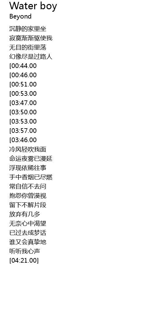 | [01:44.00][00:46.00] | 找不到梦想 |