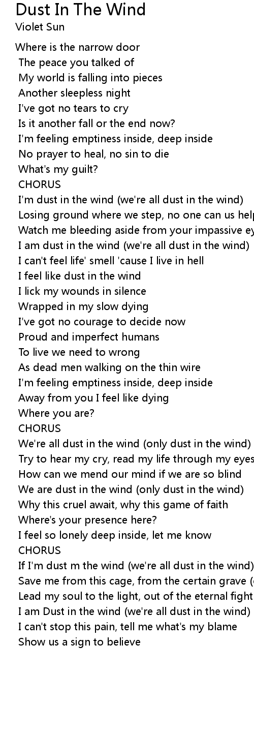 Try to hear my cry, read my life through my eyes (we're all dust in the wind)