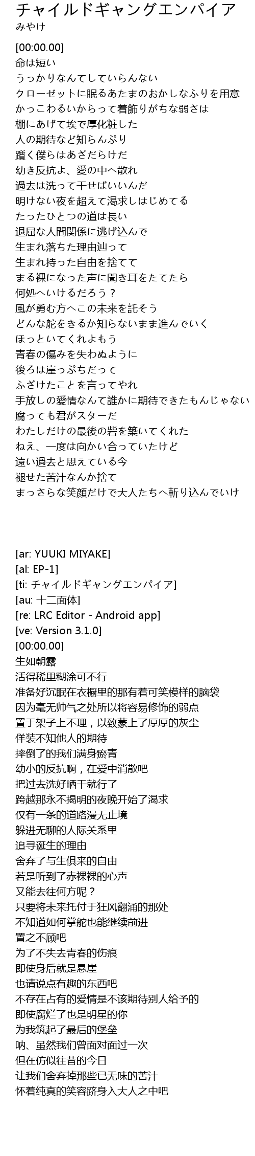 | [00:40.31] | 明けない夜を超えて渇求しはじめてる |